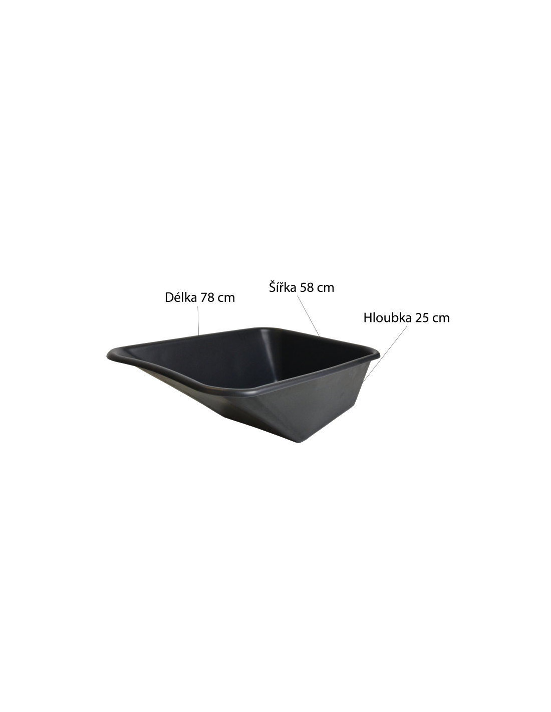 Kunststoffladeschale 80 l: Breite 58 cm, Länge 78 cm, Tiefe 25 cm, Gewicht 2,3 kg