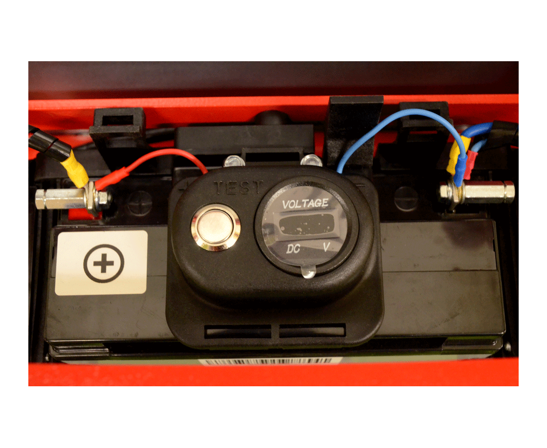 Seit November 2018 ist jeden Motokarre mit einen integrierten Voltmeter ausgestatten, das die aktuelle Batteriespannung während des Motorbetriebs oder nach Drücken der Taste anzeigt.