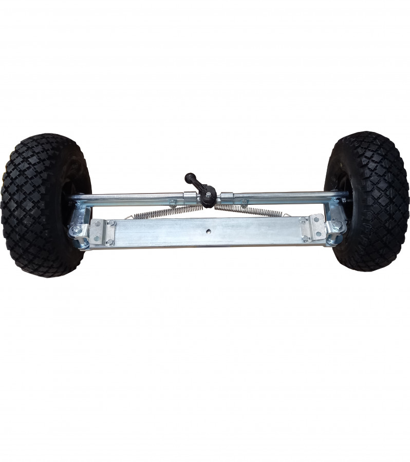Jeśli zamawiasz dodatkowe koła do już zakupionego modelu Motúčk, w formularzu zamówienia podaj rozstaw nóg swojego modelu Motúčk! Dodatkowe koła z hamulcem są zamontowane na ruchomych ramionach i połączone drążkiem stabilizującym, podobnie jak w pojazdach drogowych. Koła zębate mają fabrycznie ustawiony prawidłowy kąt Ackermanna, dzięki czemu każde koło toczy się z prawidłowym promieniem skrętu i bez poślizgu. Dodatkowe koła przenoszą cały ciężar, który w przeciwnym razie jest przenoszony przez osobę pracującą z Motúčkiem. Ciężar obciążający przednie koło pozostaje taki sam, jak w przypadku jednokołowego Motúčeka. W ten sposób zapewniony jest dobry kontakt koła napędowego z powierzchnią, a jednocześnie zerowe obciążenie osoby. Osoba obsługuje tylko przełącznik napędu na uchwycie i wskazuje kierunek jazdy poprzez lekki nacisk na uchwyt w lewo lub w prawo. Teraz także z mechanicznym hamulcem, który utrzymuje Motúčko stabilnie w każdym terenie. Dodatkowe tylne koła można zamontować na Motúčko Mokař Velký wszędzie tam, gdzie dodatkowa szerokość platformy nie jest problemem, ale wymagana jest zwiększona stabilność podczas pokonywania terenu.