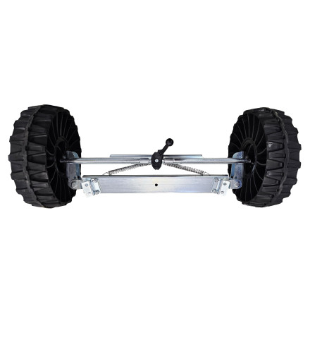 Jeśli zamawiasz dodatkowe koła do już zakupionego modelu Motúčk, w formularzu zamówienia podaj rozstaw nóg swojego modelu Motúčk! Dodatkowe koła z hamulcem są zamontowane na ruchomych ramionach i połączone drążkiem stabilizującym, podobnie jak w pojazdach drogowych. Koła zębate mają fabrycznie ustawiony prawidłowy kąt Ackermanna, dzięki czemu każde koło toczy się z prawidłowym promieniem skrętu i bez poślizgu. Dodatkowe koła przenoszą cały ciężar, który w przeciwnym razie jest przenoszony przez osobę pracującą z Motúčkiem. Ciężar obciążający przednie koło pozostaje taki sam, jak w przypadku jednokołowego Motúčeka. W ten sposób zapewniony jest dobry kontakt koła napędowego z powierzchnią, a jednocześnie zerowe obciążenie osoby. Osoba obsługuje tylko przełącznik napędu na uchwycie i wskazuje kierunek jazdy poprzez lekki nacisk na uchwyt w lewo lub w prawo. Teraz także z mechanicznym hamulcem, który utrzymuje Motúčko stabilnie w każdym terenie. Dodatkowe tylne koła można zamontować na Motúčko Mokař Velký wszędzie tam, gdzie dodatkowa szerokość platformy nie jest problemem, ale wymagana jest zwiększona stabilność podczas pokonywania terenu.